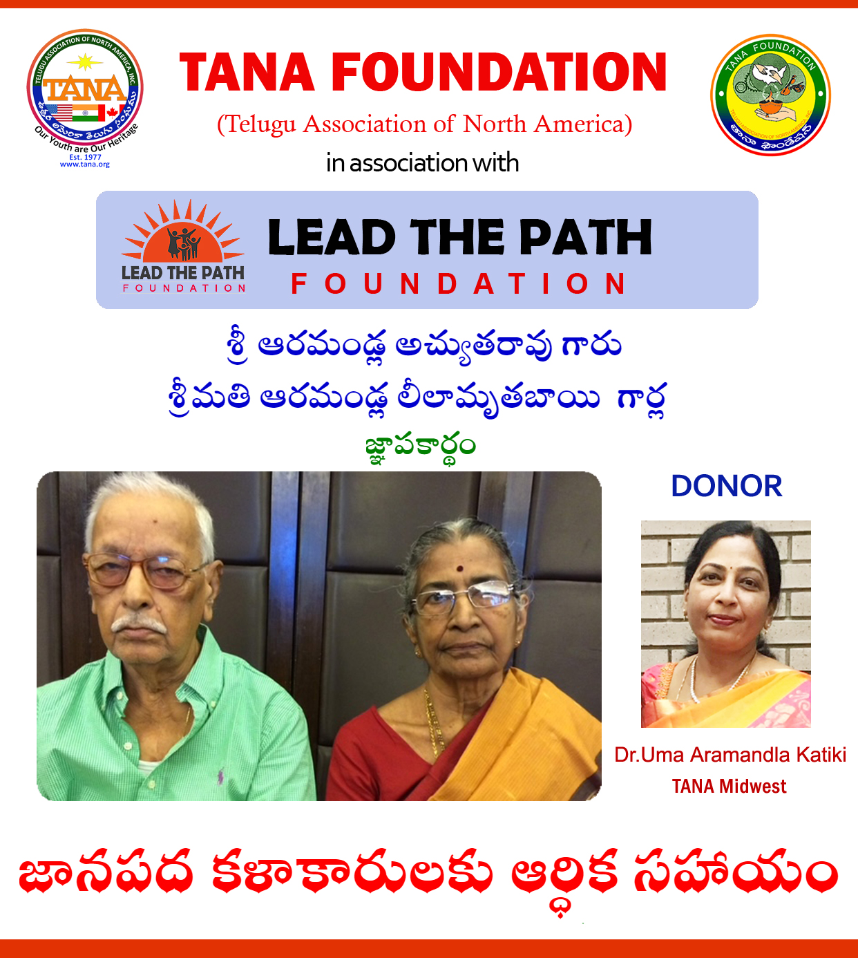 Organized Annadaanam for at Amma Prema Adarana Old age Home in Vijayawada - 2023 & Financial support was given to Folk Artists (Janapada Kalakarula) Families - 2023